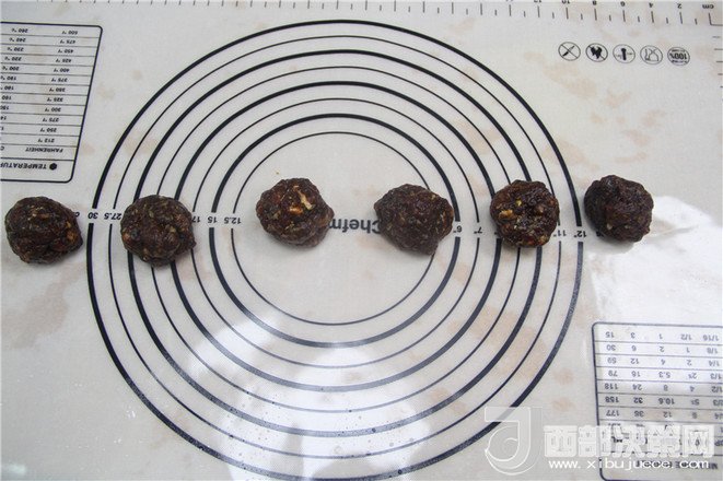 11.把油皮分割成6個(gè)25克,油心分成6個(gè)20克,分別揉成團(tuán)。