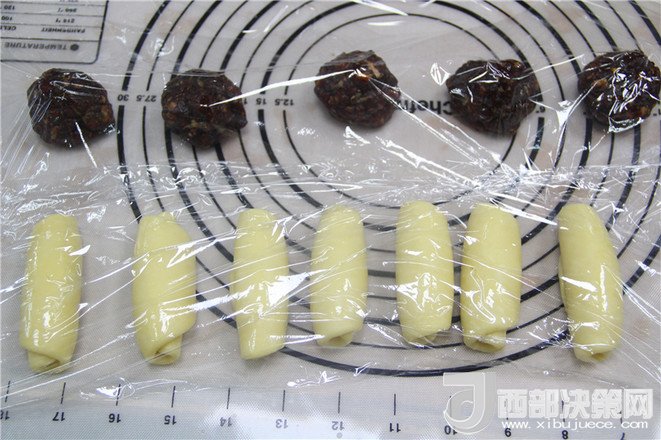 17.全部卷完后,用保鮮膜包起來(lái),靜置5分鐘。