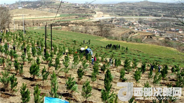 一番火熱的勞動,放眼望去:明媚的春光里,連片的樹苗錯落有致、迎風挺立、綻放生機,“阿陽大地又增添了一抹新綠”。
