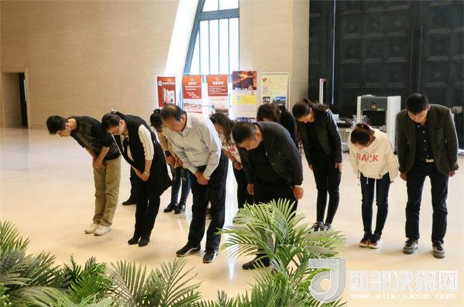 活動(dòng)中,館長(zhǎng)聶明靜、副館長(zhǎng)王雅麗以身作則,率先垂范,首先帶領(lǐng)廣大干部職工積極行動(dòng),擦拭墓碑,修整松林,清除雜草,規(guī)整垃圾,用這種簡(jiǎn)單而樸實(shí)的行動(dòng)來緬懷祭奠革命英魂。接著在王雅麗的主持下,由聶明靜帶頭紛紛向?yàn)楹葱l(wèi)陜甘邊革命勝利果實(shí)而英勇獻(xiàn)身的南梁閆洼子四十二烈士敬獻(xiàn)鮮花、鞠躬默哀、聽述先輩事跡,并赴新館序廳向?yàn)榻⑿轮袊?guó)而鞠躬盡瘁矢志一生的“五大書記”(毛澤東、周恩來、朱德、劉少奇、任弼時(shí))銅像雕塑祭花默哀、撣拭塵灰,真切地表達(dá)了每一位紀(jì)念館人對(duì)無數(shù)英烈先賢革命壯舉的深切緬懷和偉大革命領(lǐng)袖的哀思敬慕之情。