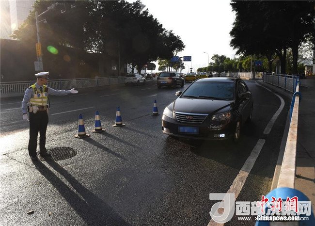 重慶市交巡警總隊秩序支隊相關負責人表示,經(jīng)多方實地勘查、試驗檢測,在環(huán)道內讓車輛逆行變道,減少環(huán)道內車輛交織量疊加,從而提升交通樞紐運轉率這種方式在全國屬首次。周毅攝