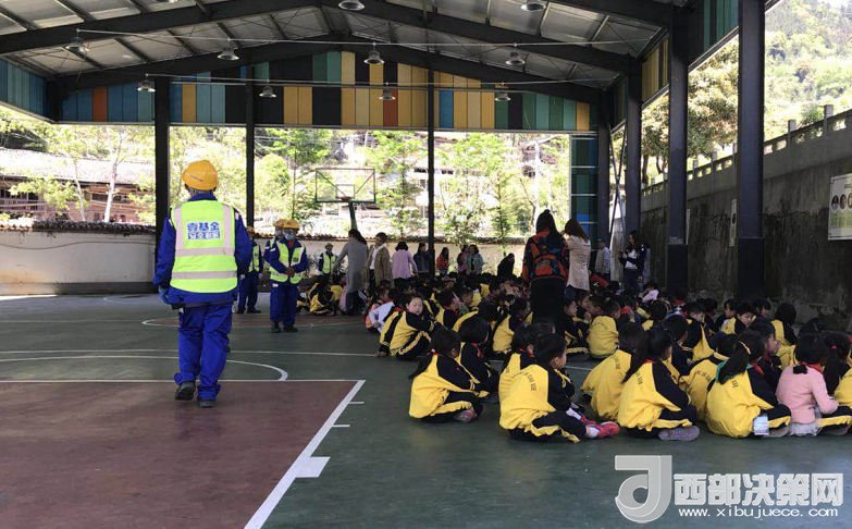 隨著一聲警報長鳴,雅安市蘆山縣雙石鎮(zhèn)中心小學的200余名學生在老師的帶領(lǐng)下,迅速、有序的從教學樓跑到操場,雙手抱頭蹲在操場的臨時安置區(qū)。校長楊成虎統(tǒng)計完人數(shù)后,立刻安排所有師生趕往校園深處的地震避難場。