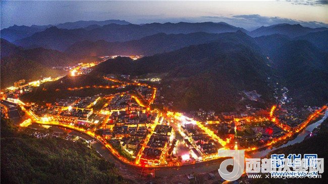 夜幕下的新青川縣城,燈火輝煌(4月25日無人機拍攝)。新華社記者陶明攝