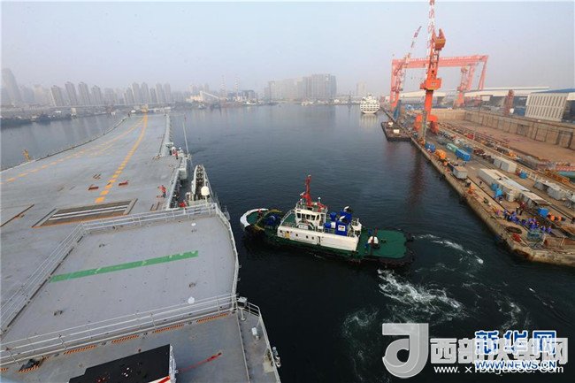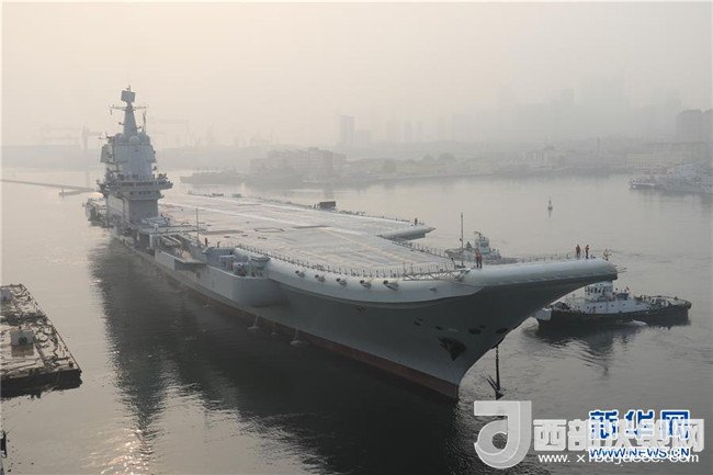 5月13日,我國第二艘航母從大連造船廠碼頭啟航,赴相關(guān)海域執(zhí)行海上試驗(yàn)任務(wù),主要檢測驗(yàn)證動(dòng)力系統(tǒng)等設(shè)備的可靠性和穩(wěn)定性。新華社發(fā)(李剛 攝)