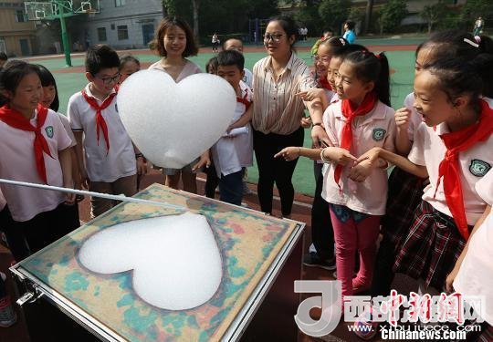 孩子們體驗造云工程師,制造出“心形云”?!°蟛?攝