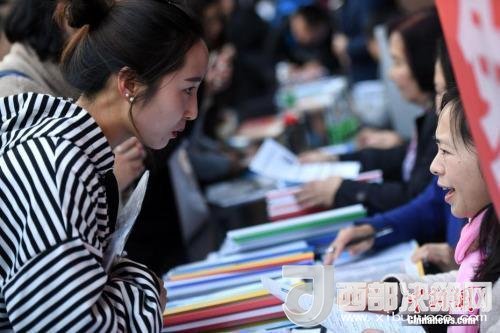 資料圖:招聘會現(xiàn)場在洽談的雙方。中新社記者 李進紅 攝