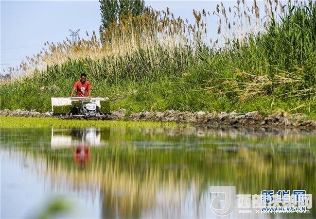 在新疆察布查爾錫伯自治縣種羊場托海依村拍攝的一處農(nóng)田,秧苗與遠處的雪山相映成趣(5月21日攝)。近日,隨著氣溫漸高,地處新疆伊犁河谷的察布查爾錫伯自治縣迎來插秧高峰期,田間地頭一派繁忙景象。塊塊稻田水滿如鏡,田間防護林枝繁葉茂,遠處雪山依稀可見,如一幅在大地上鋪展開的生態(tài)畫卷。新華社記者胡虎虎攝