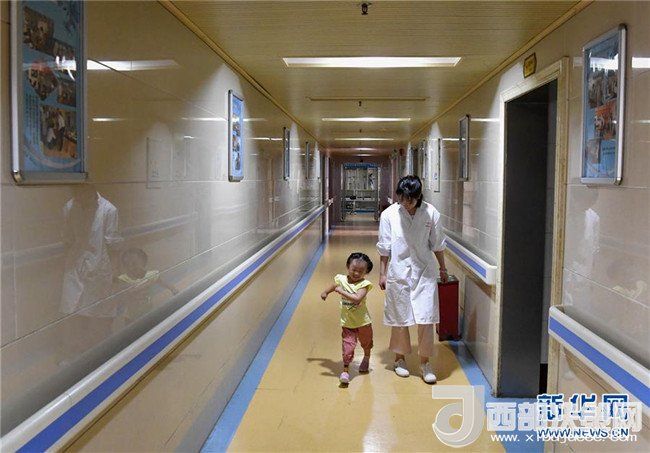 5月29日,笑笑在假肢康復(fù)訓(xùn)練指導(dǎo)師袁紫薇的陪護(hù)下練習(xí)獨(dú)立行走。