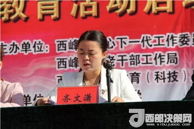 啟動(dòng)儀式由西峰區(qū)人民政府副區(qū)長(zhǎng)、關(guān)工委副主任齊文瀟主持,并作“傳承紅色基因,爭(zhēng)做時(shí)代新人”主題教育動(dòng)員講話(huà)。她指出,開(kāi)展“傳承紅色基因,爭(zhēng)做時(shí)代新人”主題教育活動(dòng),是為貫徹落實(shí)習(xí)近平新時(shí)代中國(guó)特色社會(huì)主義思想對(duì)關(guān)心下一代工作提出的新要求作出的重大部署和安排,主要目的在于引導(dǎo)廣大青少年認(rèn)清自己的“根”和“魂”,教育引導(dǎo)廣大青少年從紅色基因中汲取道德滋養(yǎng)和文化精髓,自覺(jué)踐行社會(huì)主義核心價(jià)值觀,堅(jiān)定理想信念,為實(shí)現(xiàn)偉大復(fù)興的中國(guó)夢(mèng)做出應(yīng)有的貢獻(xiàn)。