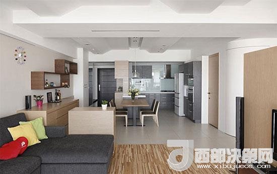 設(shè)計(jì)師打開原客廳后方的小房間格局,再以半高木柜墻體形塑穿透感空間分野。