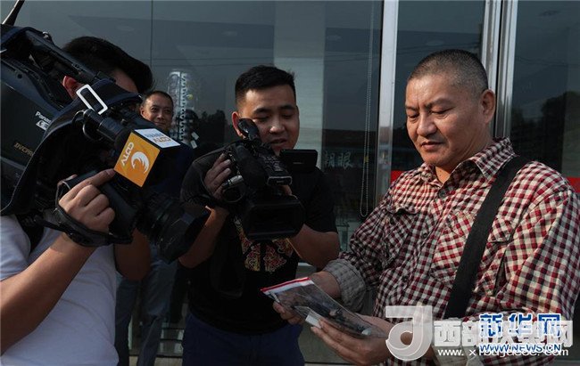 6月7日,梁實(右一)在2018年高考成都通錦中學考點,接受媒體采訪。新華社記者 江宏景攝