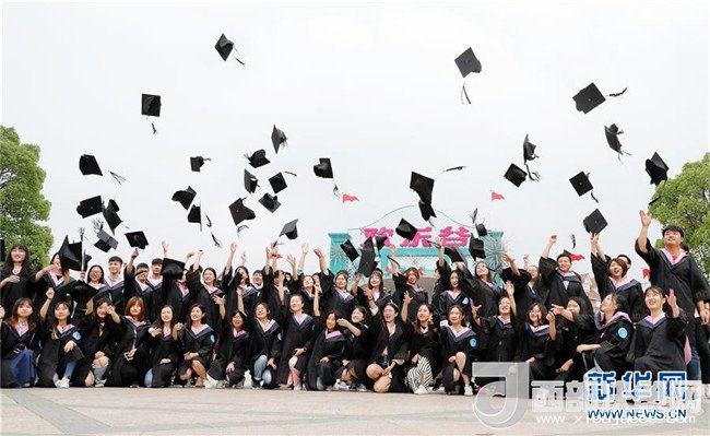 6月10日,畢業(yè)生們?cè)跉g樂(lè)谷廣場(chǎng)上拍合影。新華社記者 方喆攝