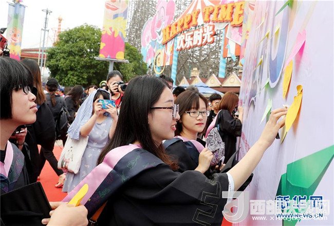 當(dāng)日,來(lái)自上海10余所高校的近80名應(yīng)屆大學(xué)本科畢業(yè)生來(lái)到上海歡樂(lè)谷,參加在這里舉行的過(guò)山車畢業(yè)禮活動(dòng)。