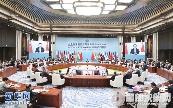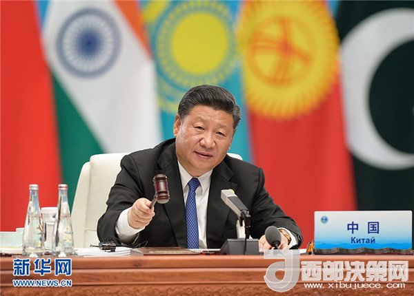習近平隨后發(fā)表題為《弘揚“上海精神” 構(gòu)建命運共同體》的重要講話。習近平指出,上海合作組織成立17年來,走過了不平凡的發(fā)展歷程,取得了重大成就。我們以《上海合作組織憲章》、《上海合作組織成員國長期睦鄰友好合作條約》為遵循,構(gòu)建起不結(jié)盟、不對抗、不針對第三方的建設(shè)性伙伴關(guān)系。這是國際關(guān)系理論和實踐的重大創(chuàng)新,開創(chuàng)了區(qū)域合作新模式,為地區(qū)和平與發(fā)展作出了新貢獻。今天,上海合作組織是世界上幅員最廣、人口最多的綜合性區(qū)域合作組織,國際影響力不斷提升,已經(jīng)成為促進世界和平與發(fā)展、維護國際公平正義不可忽視的重要力量。