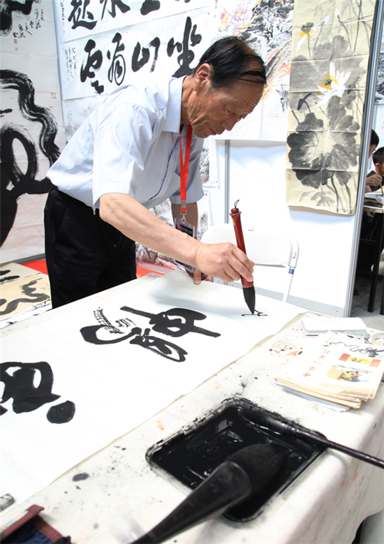 石博會(huì)邀請(qǐng)到來自北京、天津、河南、江蘇、甘肅、沈陽及新疆等地的并在全國享負(fù)盛名的近80位書畫大師現(xiàn)場揮墨。其中有人物畫、花鳥畫(走獸)、山水畫、篆,隸,行,楷,草書法等作品一一呈現(xiàn)。為社會(huì)各界鐘情于傳統(tǒng)書畫藝術(shù)的人士提供與大師近距離接觸的機(jī)會(huì),讓到場的各位書畫愛好者大飽眼福,眾多大師的作品給人留下深刻的印象