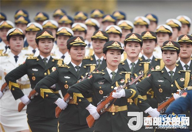 6月6日下午,國(guó)家主席習(xí)近平在人民大會(huì)堂東門外廣場(chǎng)舉行儀式,歡迎吉爾吉斯斯坦總統(tǒng)熱恩別科夫?qū)χ袊?guó)進(jìn)行國(guó)事訪問(wèn)。這是在歡迎儀式上首次增加的三軍儀仗隊(duì)女兵方陣。新華社記者 陳曄華 攝
