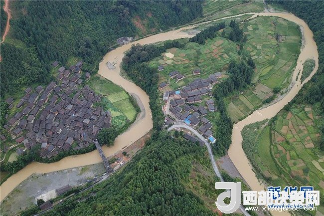 煙雨中的貴州省榕江縣寨蒿鎮(zhèn)三洲村風光(6月24日無人機拍攝)。