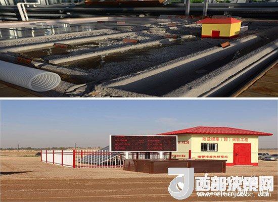 暗管排鹽光伏泵站模型和已經(jīng)建設成功的暗管排鹽光伏泵站
