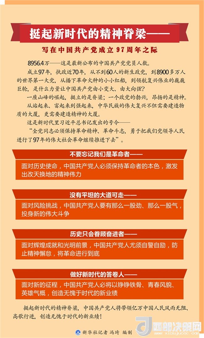 挺起新時代的精神脊梁,中國共產(chǎn)黨人將帶領億萬中國人民風雨無阻、高歌行進,創(chuàng)造無愧于時代的新業(yè)績!(記者:趙承、詹勇、張曉松、謝良、周文林、陳煒偉、朱基釵、吳晶、姜瀟、王卓倫、榮啟涵)
