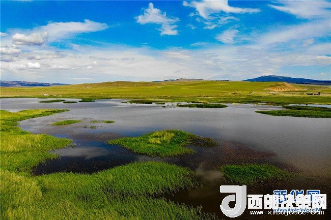 7月3日在新疆哈密天山風景區(qū)拍攝的伊吾馬場濕地。新華社發(fā)(普拉提 攝)