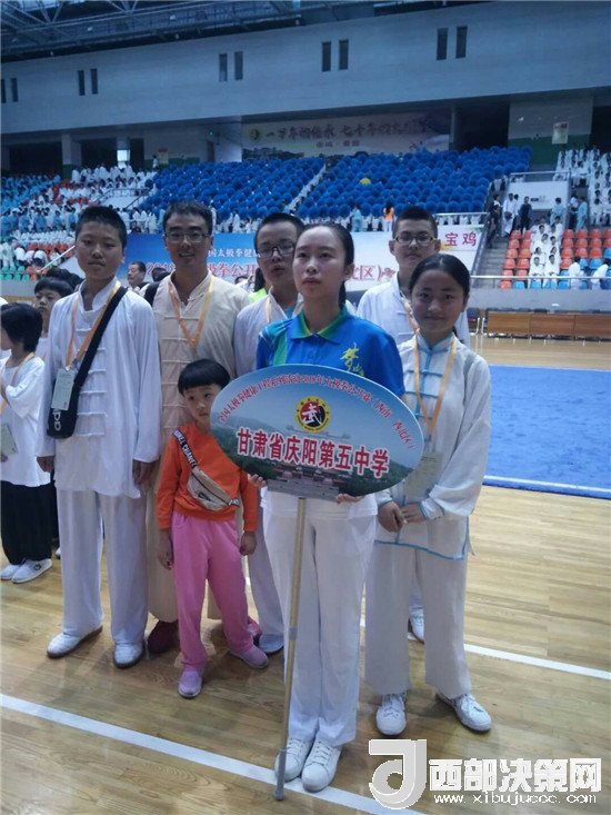 為了參加本次比賽,慶陽市第五中學(xué)武術(shù)隊(duì)積極備戰(zhàn),通過選拔,組成了一支由校長(zhǎng)張建軍為領(lǐng)隊(duì),申正罡老師為教練的七人代表隊(duì),分別參加B、C組男、女太極拳及太極刀劍的比賽。