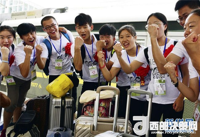 7月10日,前往寧夏西吉支教的志愿者出發(fā)前相互鼓勁加油。