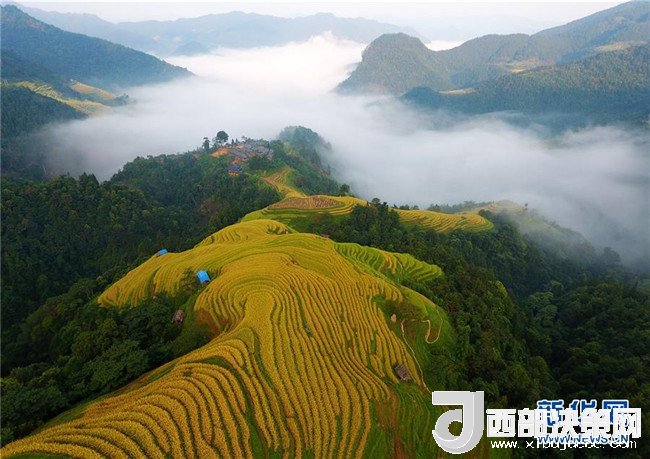 黔東南苗族侗族自治州榕江縣郊外的梯田風(fēng)光(2017年9月18日無人機拍攝)。