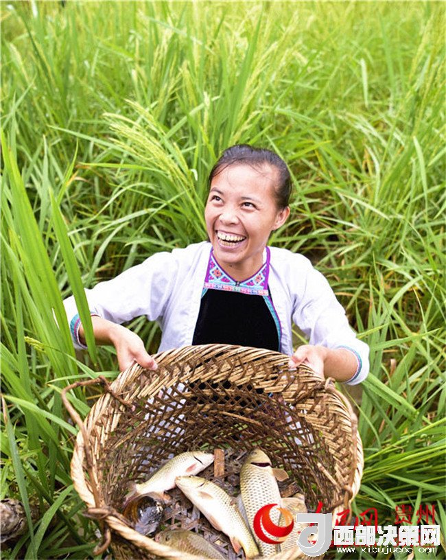 在貴州省從江縣高增鄉(xiāng)占里村,侗族姑娘吳紅花展示捉到的鯉魚(yú)。(吳德軍攝)