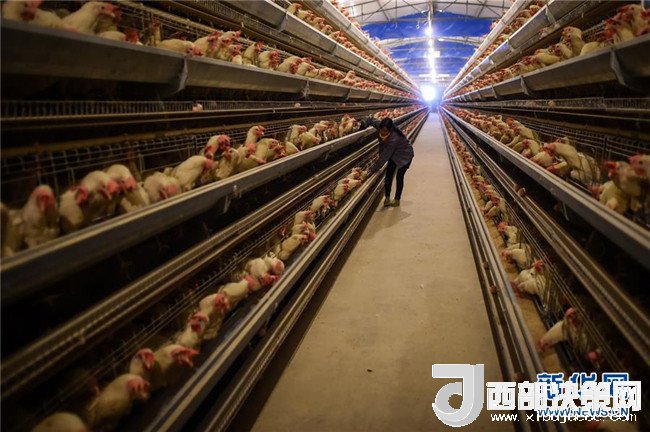 在貴州畢節(jié)市七星關(guān)區(qū)五里坪村,當(dāng)?shù)剞r(nóng)戶在一個(gè)屬于精準(zhǔn)扶貧項(xiàng)目的養(yǎng)雞場(chǎng)內(nèi)工作(2015年11月15日攝)。新華社記者 歐東衢 攝