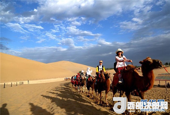 當(dāng)日,甘肅省敦煌市鳴沙山月牙泉景區(qū)云景如畫,美不勝收,游客徜徉其中,盡情欣賞大漠風(fēng)光。 新華社發(fā)(張曉亮 攝)