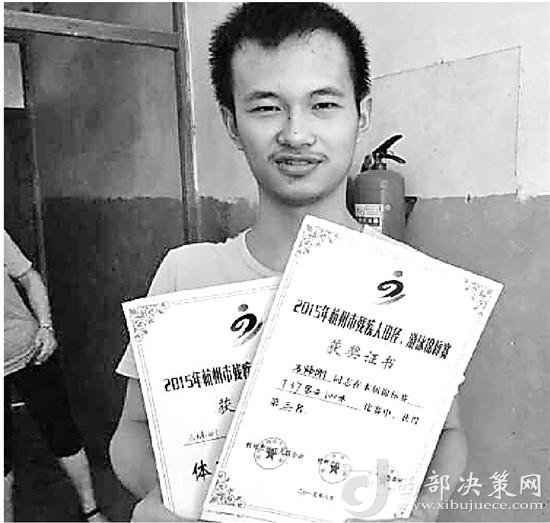 小學(xué)、初中成績名列前茅,考入重點高中,成績同樣優(yōu)秀。不僅如此,煒剛還參加了2012年杭州市青少年殘疾人田徑、游泳、射擊錦標賽,2015年杭州市殘疾人田徑、游泳錦標賽,努力奔跑的他獲得了一個又一個好成績,捧回了一張又一張獎狀。