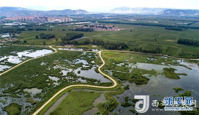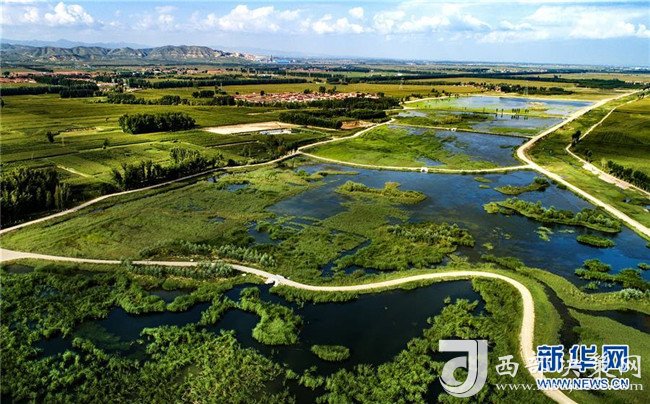 8月22日無(wú)人機(jī)拍攝的廣靈縣壺流河濕地。新華社記者 陶明 攝