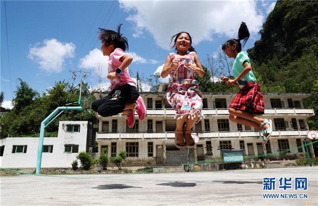 9月3日,重慶市黔江區(qū)石家鎮(zhèn)滲壩小學的學生在課間跳繩。