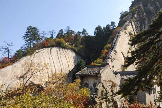 魏晉南北朝時(shí),還沒有通向華山峰頂?shù)牡缆?。直到唐朝,隨著道教興盛,道徒開始居山建觀逐漸在北坡沿溪谷而上開鑿了一條險(xiǎn)道,形成了"自古華山一條路"。