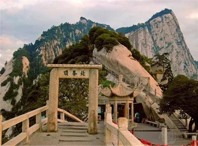 北峰海拔1614米,為華山主峰之一,因位置居北得名。北峰四面懸絕,上冠景云,下通地脈,巍然獨(dú)秀,有若云臺(tái),因此又名云臺(tái)峰。唐李白《西岳云臺(tái)歌送丹丘子》詩(shī)曾寫到:“三峰卻立如欲摧,翠崖丹谷高掌。白帝金精運(yùn)元?dú)猓魃徎ㄔ谱髋_(tái)。”