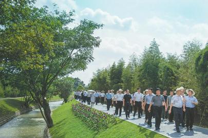 9月3日,與會代表在郫都區(qū)“綠色戰(zhàn)旗、幸福安唐”鄉(xiāng)村振興博覽園參觀考察。 楊樹攝(視覺四川)
