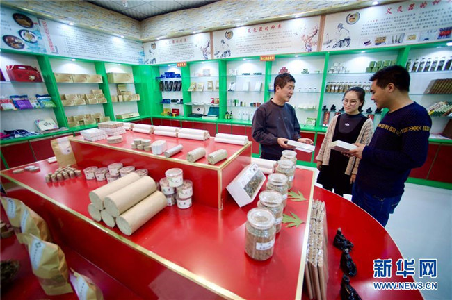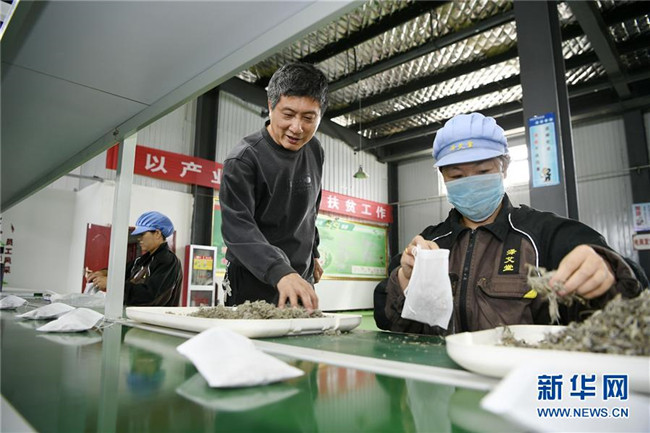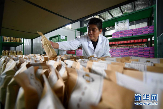 林玉清在寧夏固原市西吉縣寧夏澤艾堂生物科技有限公司查看艾草產(chǎn)品(8月30日攝)。來自福建莆田的林玉清2017年3月在西吉縣成立寧夏澤艾堂生物科技有限公司,依托西吉縣優(yōu)質(zhì)的艾草種植條件,采用“公司+合作社+農(nóng)戶”的訂單農(nóng)業(yè)合作模式,與吉強(qiáng)、新營等鄉(xiāng)鎮(zhèn)種植專業(yè)合作社合作建成艾草種植基地11個(gè)、推廣種植艾草6000畝,為當(dāng)?shù)厝罕娒撠氈赂讳伨托侣纷?。新華社記者郭緒雷攝
