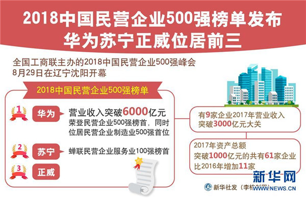日前在沈陽召開的“2018中國(guó)民營(yíng)企業(yè)500強(qiáng)峰會(huì)”上,全國(guó)工商聯(lián)發(fā)布了最新的中國(guó)民營(yíng)企業(yè)500強(qiáng)榜單。