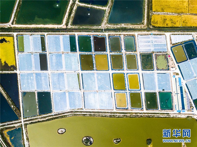 寧夏賀蘭縣藍灣生態(tài)園南美對蝦養(yǎng)殖基地(9月11日無人機拍攝)。 寧夏,地處中國西北腹地。這里的大山、大河、草原、沙漠、湖泊,猶如一幅幅美妙畫卷,讓人流連忘返。 新華社記者 王建華 攝