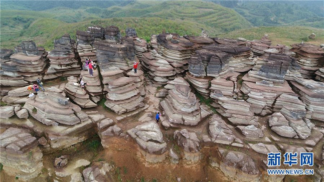 貴州省松桃苗族自治縣盤(pán)石鎮(zhèn)的紅石林景區(qū)山石奇特,吸引眾多游人。 新華社記者 楊楹 攝
