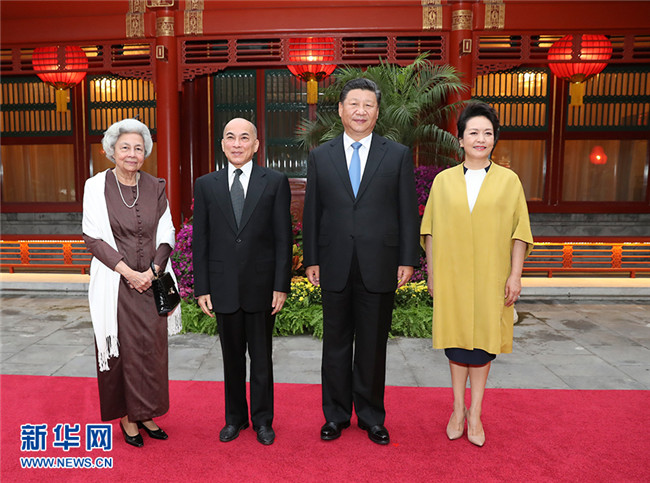 19日晚,在中秋佳節(jié)來臨之際,國(guó)家主席習(xí)近平和夫人彭麗媛在釣魚臺(tái)國(guó)賓館親切看望正在北京休養(yǎng)的柬埔寨國(guó)王西哈莫尼和太后莫尼列。