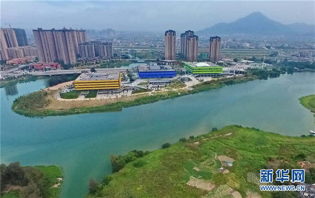 這是利用木蘭溪流域舊河道開(kāi)挖成的人工湖——玉湖。當(dāng)?shù)卦诖私Y(jié)合周邊公共綠地,建設(shè)公共建筑,實(shí)現(xiàn)了現(xiàn)代建筑與自然景觀渾然一體(8月6日無(wú)人機(jī)拍攝)。新華社記者 林善傳 攝