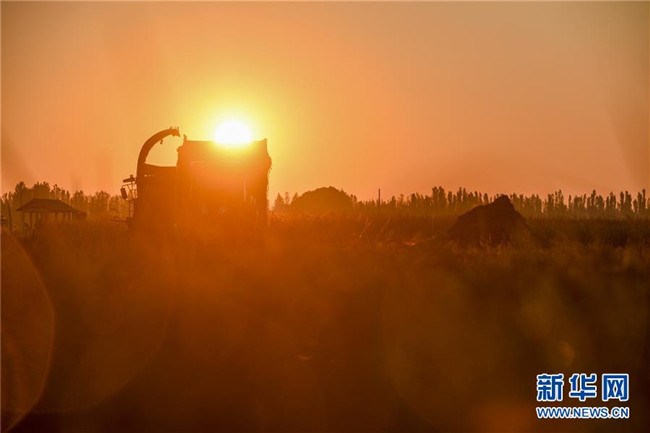 9月26日,收割機在新疆察布查爾錫伯自治縣納達齊牛錄鄉(xiāng)的一處稻田收割水稻。眼下,地處新疆伊犁河谷的察布查爾錫伯自治縣約20萬畝水稻迎來收割季。當?shù)剞r(nóng)民搶抓農(nóng)時,忙碌在金色田園中。記者 胡虎虎 攝