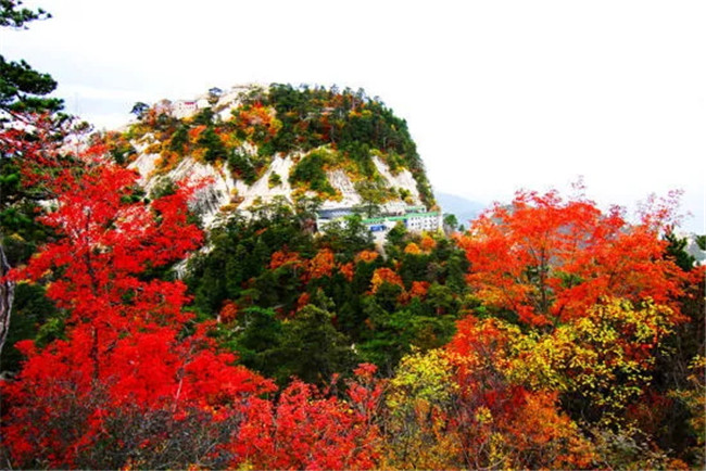 鷂子翻身、長空棧道、蒼龍嶺,更是險(xiǎn)中紅葉別樣紅。西峰上茫茫云海,紅葉相伴,美輪美奐。