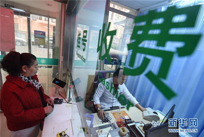 2017年4月8日,北京“醫(yī)藥分開”綜合改革正式在3600余家醫(yī)療機(jī)構(gòu)實(shí)施。這是市民在北京東花市社區(qū)衛(wèi)生服務(wù)中心掛號(hào)交錢。 新華社記者 羅曉光 攝