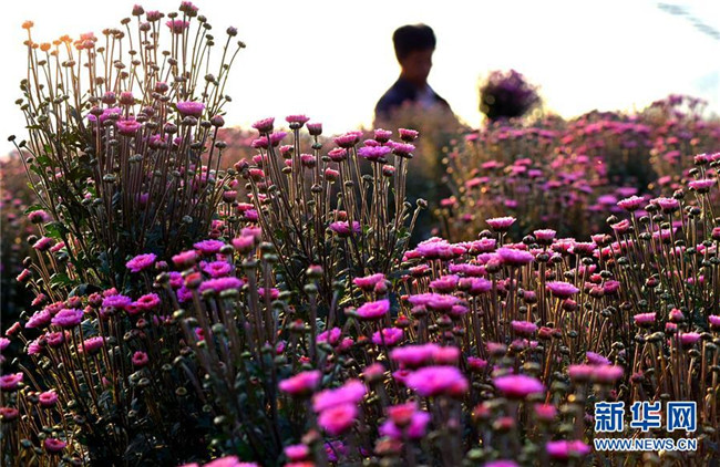 10月9日,在山東省淄博市沂源縣石橋鎮(zhèn)一花卉種植基地,工人在采摘多頭菊。 新華社發(fā)(趙東山 攝)