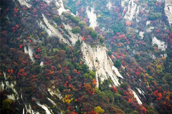 當(dāng)秋風(fēng)拂過(guò)山巒,華山自上而下流動(dòng)著豐富而鮮明,生動(dòng)而絢麗的色彩。
