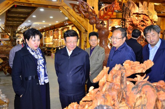 張建龍首先來到烏馬河木藝文化小鎮(zhèn),詳細(xì)了解小鎮(zhèn)規(guī)劃布局和建設(shè)發(fā)展情況,通過觀看小鎮(zhèn)宣傳片,現(xiàn)場參觀小鎮(zhèn)服務(wù)中心、木藝產(chǎn)品店,對伊春市木藝文化產(chǎn)業(yè)發(fā)展表示高度肯定。他指出要繼續(xù)突出原生態(tài)特色,加強創(chuàng)新創(chuàng)意設(shè)計,滿足人民群眾對林業(yè)產(chǎn)品多樣化的需求。走進(jìn)美江木藝公司,就如同走進(jìn)了藝術(shù)的殿堂,制作精良的木拼畫、惟妙惟肖的根雕、造型別致的樹榴工藝產(chǎn)品,一件件精美的木制工藝品,令人目不暇接。張建龍仔細(xì)觀賞這些木制產(chǎn)品,向企業(yè)負(fù)責(zé)同志詳細(xì)了解產(chǎn)品創(chuàng)意設(shè)計和市場銷售等情況。勉勵企業(yè)要再接再厲,繼續(xù)做好產(chǎn)品研發(fā),全面提升工藝水平,創(chuàng)造出更多更好的生態(tài)特色產(chǎn)品,進(jìn)一步增強林業(yè)發(fā)展的活力與動力。