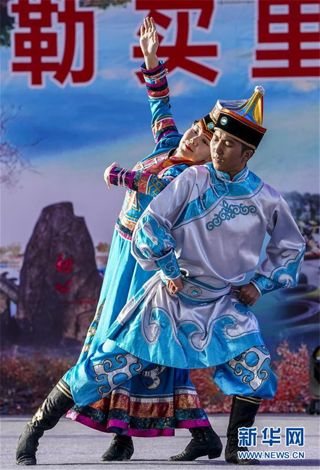 10月22日,演員在果勒買里村為游客和村民表演節(jié)目。 新疆巴楚縣阿納庫勒鄉(xiāng)果勒買里村緊鄰巴楚縣城,區(qū)位優(yōu)勢明顯。近年來,新疆維吾爾自治區(qū)體育局“訪民情”“惠民生”“聚民心”駐村工作隊幫助村里完善基礎設施和改善村容村貌,借助節(jié)慶活動大力發(fā)展鄉(xiāng)村旅游,吸引周邊及外地游客前來觀光休閑,既豐富了村民的文化生活,又為村民增收致富拓寬了門路。 新華社記者 胡虎虎 攝