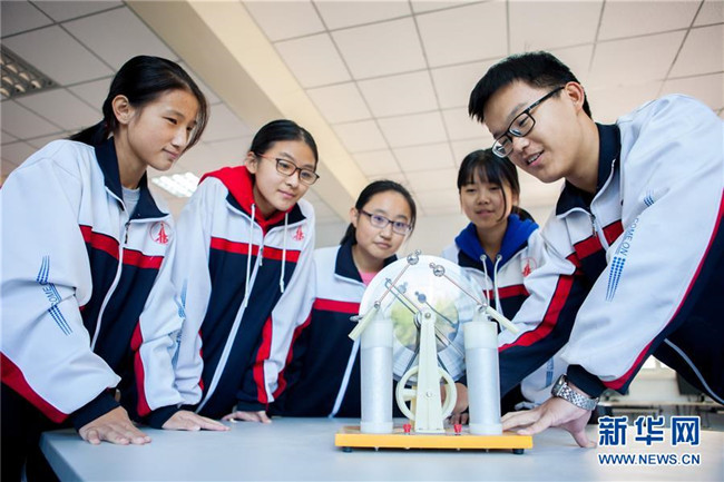 近年來,河北武邑中學(xué)開設(shè)機器人、航模、科技實驗等趣味科普課程,激發(fā)學(xué)生的創(chuàng)新創(chuàng)造意識和科學(xué)探索精神,讓學(xué)生近距離感受科技魅力。 新華社記者 朱旭東 攝